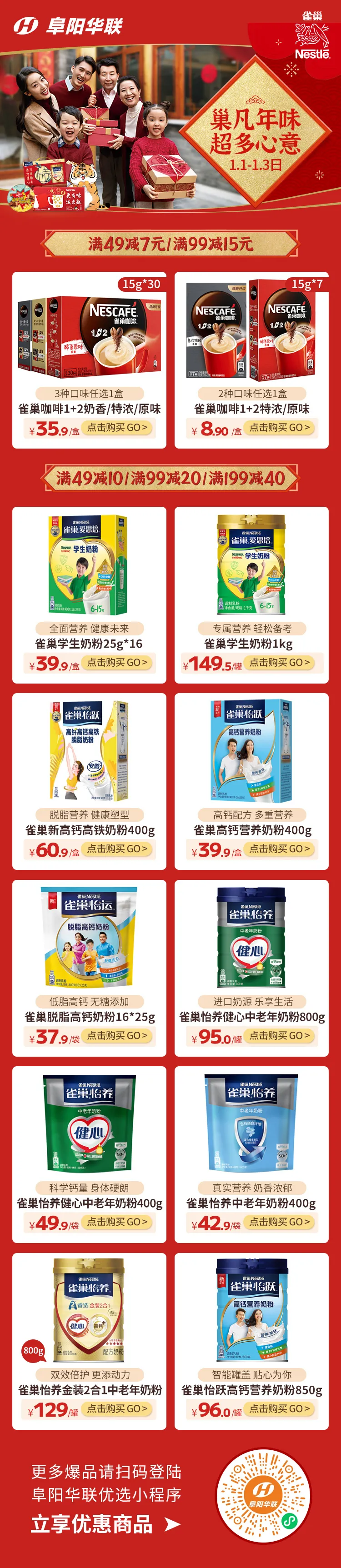 “巢凡年味·超多心意” | 阜陽(yáng)華聯(lián)優(yōu)選·雀巢品牌滿減優(yōu)惠!