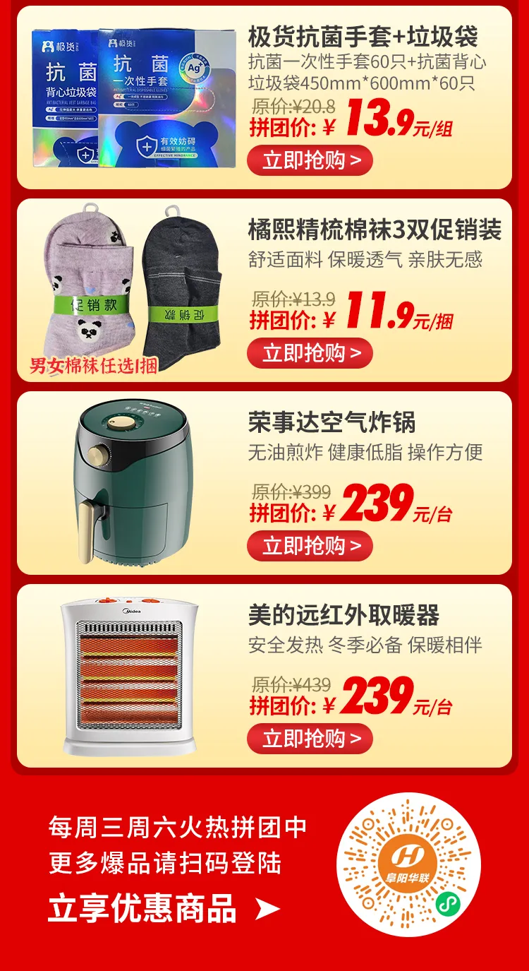 阜陽華聯(lián)優(yōu)選1·12拼團(tuán),搶:新鮮美味+保暖好物!