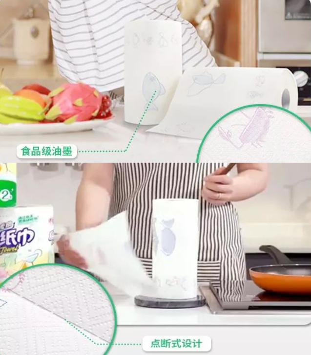 紙巾上面還有各種各樣的小動(dòng)物圖案,給繁瑣廚房生活添加些許樂(lè)趣。斷點(diǎn)式截用,一次一片,方便快捷。