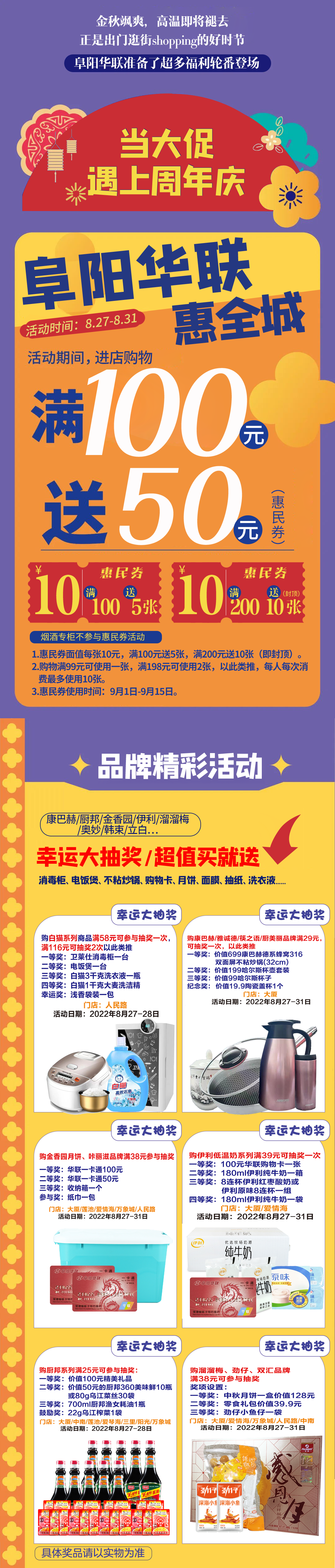 滿100送50 | 初秋時(shí)節(jié),阜陽華聯(lián)·惠全城!